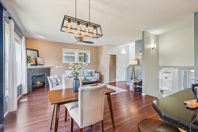 The large kitchen and family room extend to an upper deck with views of trees and open green space, creating a peaceful backdrop for gatherings. Enjoy cozy fall and winter evenings by the fireplace, or cook and entertain with ease in the well-designed kitchen, featuring a center island, stainless steel appliances, large pantry, and thoughtful details throughout. With ample storage and a smart, functional layout, this home perfectly balances beauty and convenience.